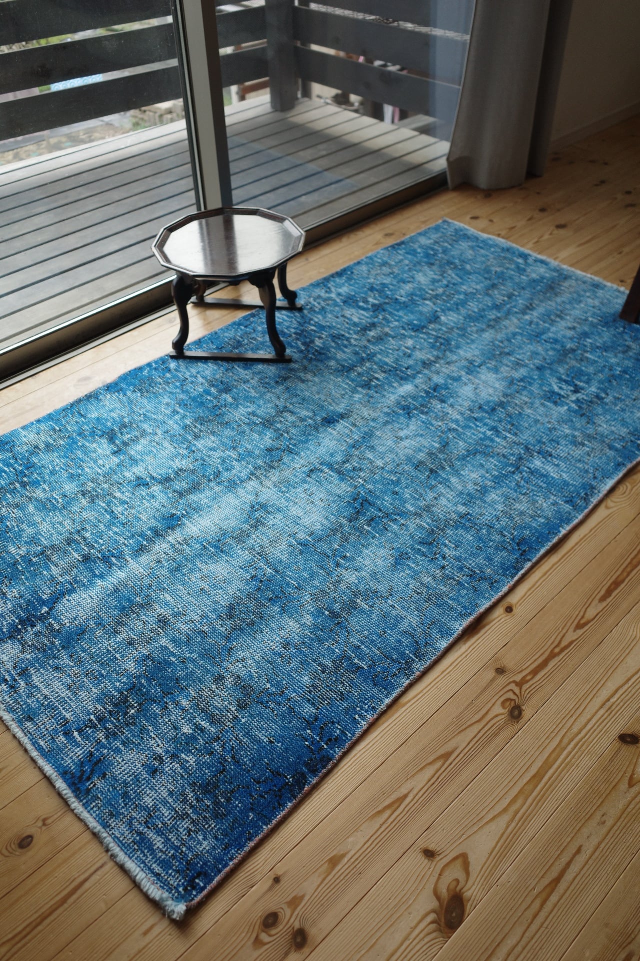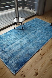 光の当たり具合でも表情をころころ変えてくれる味わい深い藍色ラグです。
