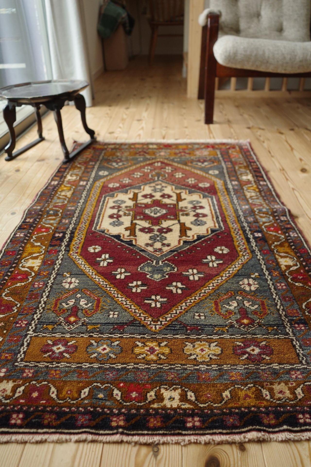 遊牧民の絨毯らしく素朴で力強さを感じます。