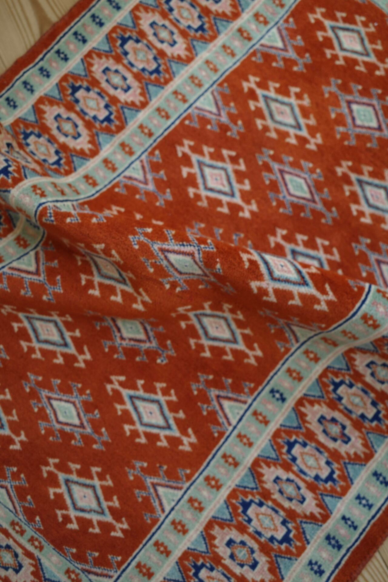 レトロポップなカラーが可愛いアフガンラグ。